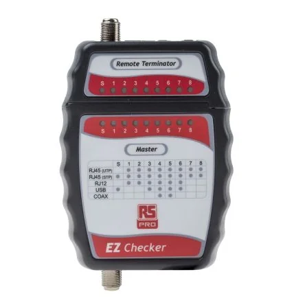 Test BNC, RJ11, and RJ45 cables efficiently with this reliable RS PRO cable tester.
