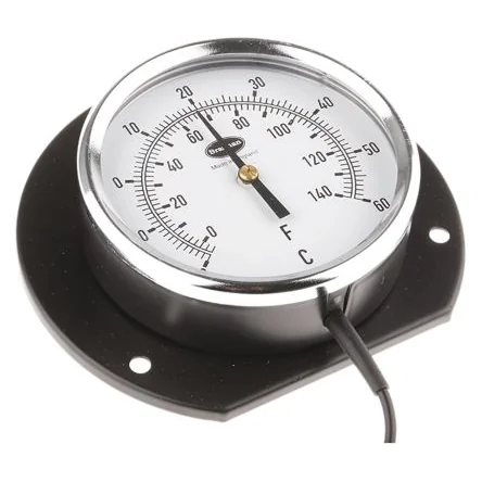 RS PRO Remote Reading Expansion Thermometer The principle of how Temperature Gauge work is around the idea of using two different bimetallic strips (usually steel and copper or steel and brass). When the strip is getting hotter, the metal is bending, and when the strip is colder, it shows the opposite. Therefore, the movement of the pieces correlates to the temperature indicating on a scale. The credit of this discovery goes to English Gentleman John Harrison in the 18th century. Even though the possibilities and technologies are constantly evolving, his findings are still valid. The Gauge is a simple, inexpensive and durable device to display the temperature of the surrounding atmosphere or an object. Their popularity reaches many industries, such as heating and ventilation, refrigeration industry, process manufacturing or process pipelines. Depending on your requirements, you can choose the right types of Temperature Gauge available on the current market. Some of them include magnetic thermometers (use with radiators), probe thermometers (use for food and gases) or clip Thermometers ideal for measuring the temperature of heating and water pipes. We are proudly introducing our own branded RS PRO Remote Reading Expansion Thermometer ideal for applications with restrictive accessibility. It is also perfect where it is advantageous to have the Thermometer remote from the sensing pocket such as on vibrating equipment. All models are highly reliable and with a competitive price range complies with BS 5235:1975, DIN 16203 and DIN 16205 industry standards. This 100 mm diameter Thermometer with bi-metallic movement and acrylic window cover indicates the surface temperature of many applications. The Gauge scale oscillates between -20°C up to + 60°C where the case material is steel. Features and Benefits The Gauge is 100 mm centigrade dial Dry Thermometer with bi-metal movement Supplied with a surface mounting back flange Acrylic window with steel cover Temperature Sensitive Range oscillates between -20°C up to + 60°C The Gauge is suitable for various applications Complies to BSP (British Standard Pipe) Screw on Brass of 50 mm pocket Meets BS 5235:1975, DIN 16203 and DIN 16205 standards A filled system with Bourdon Tube Element with dual scale system available Applications The Temperature Gauge with a diverse range of industries across multiple sectors makes them mandatory, particularly in: Oil & Gas Energy (Power transmission and distribution) Machine building and automation Heating, ventilation and air handling Food & Beverage Refinery Pharmaceuticals Hydraulic Paper Chemical and Petrochemical Industry Semiconductors Industry Frequently asked questions What to look out for when reading Gauge Thermometer? The dial Thermometer contains a wealth of information, such as: 1. The Pointer indicates the temperature currently prevailing. 2. On display, we have information about the units measuring (PSI, °F, °C). 3. The accuracy class is either 1 or 2, and they depend on the scale spectrum defined error limits. 4. Dial Thermometers differentiate between scale range and measuring range. Why RS PRO? RS Pro is our family brand to go-to and brings you a wide range of high-quality and high-value products to support your project. Trusted by engineers all over the world, every part of every RS PRO product is always rigorously tested against demanding industry standards. We are only giving the RS PRO seal of approval if were confident of their exceptional quality, which means you can be convinced too.