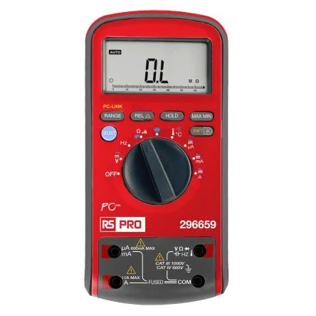 The RS PRO Digital Multimeter measures up to 10A DC and features true RMS for accurate readings.