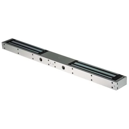 RS PRO Monitored Double Mini Magnet. With a holding force of up to 600lbs, our high-quality range RS PRO presents this brushed aluminium strong and durable magnetic lock. With a current draw of 480 mA at 12 V dc and 240 mA at 24 V dc. Applications may feature security doors, laboratories, or any other environment where remote door operation is needed via door magnets. Features and Benefits:. ;ul> ;li>Operating voltage: 12 or 24 V dc ;/li> ;li>Brushed aluminium housing ;/li> ;li>Current draw: 480mA at 12 V dc x 2, 240mA at 24 V dc x 2 (at temperature 20 °C) ;/li> ;li>Magnetic bond sensor monitor output remotely monitors the door lock or unlock status. (N.C. Output-Door opened; N.O. Output-door closed) ;/li> ;li>(SPDT rated 0.25A at 12Vdc) ;/li> ;li>Operating temperature: -10°C to +55 °C (14 to 131 °F) ;/li> ;li>Humidity: 0 to 95% non-condensing ;/li> ;li>Lock ‘s surface temperature: Current temperature +/-20% (when power is on) ;/li> ;li>Holding force up to 600lbs x 2 (272 x 2kg) ;/li> ;li>Weight: 3.7kg (approx) ;/li> ;li>Monitored ;/li> ;li>LED status ;/li> ;/ul>. Typical Applications. Access control door magnets can be used across various domestic and commercial applications and offer solutions where a high security level is required. In some environments doors are required to be held open under normal conditions and them automatically released in the event of fire alarms and evacuation. Door magnets ensure that doors close automatically and are securely closed. Magnetic door holders are suitable for a range of applications, such as schools, nursing homes, and hospitals, to form part of a high-quality security system. FAQs. How to install a door magnet? Generally, the electromagnet is attached to the door frame, whilst an armature plate is attached to the door itself. Occasionally brackets may be needed to ensure the magnet is in the correct position for contact with the plate. To achieve the optimal pull force of 100%, a contact area must be achieved using the recommended armature plates. Where would an access control door magnet be useful? ;ul> ;li>Professionals and individuals intending to increase the safety of their property ;/li> ;li>Essential for where a door must close automatically in the event of an emergency, for example in nursing homes, hospitals, schools, and industrial premises ;/li> ;li>Industrial automation and fire safety, for example locking doors in the event of fire alarms ;/li> ;/ul>