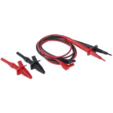 Right angled versions are not recommended for use with Megger BM100, BM101, Thurlby 1905, 1503, Fluke 8010, 8050, Wavetek DM25XL, DM93, DM98, AVO 8, AVO 2001 and ITT MX112 multimeters. For these models straight versions are more suitable. RS PRO Fused Test Leads 1000V CAT III. A 1.2m fused test lead set from our RS PRO range offering a high degree of protection to the user when measuring on high energy circuits up to 1000V CAT III. The leads are available with either straight 4mm plugs with retractable shroud, or with right-angled shrouded plugs. Test leads for multimeters are used to test voltage, current, capacitance and other types of testing. Supplied in a plastic wallet, this test lead kit is available with straight or right-angled 4mm plugs and is suitable for use with most multimeters and insulation testers. ; 204-583 204-583 - Fused right-angled test lead set ; 204-599 204-599 - Retractable Straight Plug Before making any voltage measurements, check the continuity of the leads to ensure that the fuses are intact. RS PRO have a wide range of test leads, multimeters and accessories that have been RS approved meaning that the products are value for money and high-quality you can rely on. Replacement fuses can be purchased please see RS Stock no. ; 161-1530 161-1530. Features and Benefits :. Each lead is fitted with a 500mA 1000V 50kA HRC fuse within totally touch proof integral fuse holders High-quality silicone insulated cable, resistant to heat, chemicals, oils and abrasions, with yellow inner insulation to serve as a wear indicator Large screw-in crocodile clips with a 20mm jaw opening with integral finger guards rated 600V CATIII Strain relief is provided at each end of the leads. Also available: Thin fine insulated prods set ; 2627770 2627770 for use with fused test prods and multimeter test lead sets. Shuttered lantern probe set ; 2627786 2627786 for use with fused test prods and multimeter test lead sets. Typical applications. Test leads play an important part in electrical measurement especially when connecting a digital multimeter to the unit under test. Test and Measurement. Safety Precautions. Always inspect the test probes for cracks and frayed leads before each use. If defects are found, do not use the probe.