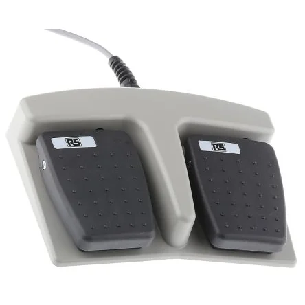 RS PRO General Purpose Momentary Foot Switch - Thermoplastic Case Material, Double Pole Single Throw (DPST), 3 AThis RS PRO general-purpose momentary foot switch is waterproof, making it well suited to applications where contact with water is likely. It uses foot pressure applied to double pedals to change contacts within an electrical circuit. The double pole, single throw (DPST) switch handles well in rugged conditions and boasts a tough, glass-filled plastic body providing an IPX7 level of ingress protection. This gives the component protection from accidental submersion in 1 m of water for up to 30 minutes. Its low-profile, rear-hinged switch is designed for improved user comfort with an all-plastic construction, raised tread pattern and anti-slip pad. The pedal is medically safe, meeting IEC a60601-1nd UL 60601-1 approvals. Youll find that this foot switch is well matched to conditions where hand-operated switches might pose a safety concern.Features and Benefits• Momentary general-purpose foot switch with thermoplastic casing • Contact voltage rating of 24 V • Silver contact material with double pole single throw (DPST) configuration • Contact current rating of 3 A • IP rating of IPX7 • Black and grey colour • Supplied with 2 m of black 3-core cable • Dimensions of 150 mm x 207 mm x 42 mm • RoHS (Restriction of Hazardous Substances) compliant • ANSI/AAMI ES60601-1:2005/(R)2012, CSA C22.2 No. 60601-1:14, EN 60601-1:2006, EN 60950, UL 60601-1:2005, UL File No E353500 standards metRS PRORS PRO is our own brand range and brings you a wide range of high-quality, great value products offering you more choice. Trusted by engineers all over the world, every part of every RS PRO product has been rigorously tested against demanding industry standards they’re only given the RS PRO Seal of Approval if we’re confident of their exceptional quality, which means you can be confident too.