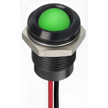 RS PRO Green Panel Mount Indicator, 24V dc, 14mm Mounting Hole Size, Lead Wires Termination, IP67 - 1302279
