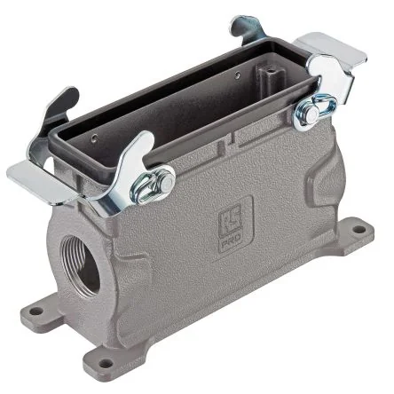 RS PRO Heavy Duty Power Connectors – Hoods and Housings. Introducing the RS PRO heavy duty power connector housings, designed for use with the RS PRO heavy duty inserts range. Made from durable zinc die-cast material with a powder-coated surface, these housings ensure optimal performance and reliability. They are available in various options to suit specialised applications and are built to withstand challenging environments and high vibration, making them ultra-durable and reliable. Why Would You Choose These Hoods and Housing?. Hoods and Housings are made from zinc die cast metal that are IP65 rated. All with metal locking levers to secure safely together. The range offers Top Entry, Side Entry, Surface Mount and Bulkhead/Panel Mount versions in sizes 3A, 6B, 10B, 16B and 24B. UL approved. Features and Benefits. ;ul> ;li>RS PRO heavy-duty housings are ideal for use in harsh or high vibration environments, ensuring optimum performance and reliability, no matter what the application ;/li> ;li>Available in a zinc die-cast housing, with powder coating for added durability and performance over long periods of time, as well as a locking lever made from galvanised iron ;/li> ;li>Available in standard or tall variations with both single and double locking options and offer IP65 protection for ultimate peace of mind and assurance ;/li> ;li>Compatible with the RS PRO heavy-duty inserts and can be used with PG or M style cable glands ;/li> ;li>RoHS compliant ;/li> ;/ul>. Applications. ;ul> ;li>Food and beverage manufacturing ;/li> ;li>Packaging machines ;/li> ;li>Conveyor belt systems ;/li> ;li>Railways ;/li> ;li>Oil and gas processing ;/li> ;/ul>