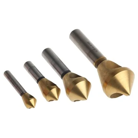 RS PRO HSS ; TiN Coated Deburrs. Cutters with 90° angles designed for chatter-free deburring and chamfering on a variety of materials at production speeds. Typical Applications:. Countersink cutter drill bits are designed to fit directly into manual, electric and cordless drill driver attachments and have hexagonal or round shanks. Countersink cutters are used to create a chamfer around the rim of a pilot hole enabling the head of a countersunk screw to sit flush. Countersink cutters can also be used to remove the burr left from a drilling or tapping operation. The HSS Countersinks are ideal working on metal and wood applications, offering a cost-effective solution with high performance and durability. Their applications include: Power drills Robot applications Stationary machines Column drills Machine tools. FAQs When should you countersink? Countersinking is done to ensure that flat head screws sit flush to the work piece. A countersink produces a conical hole matching the angle of the screw so that when the screw is fully engaged the head will sit flush or slightly below the surface. If you do not countersink the hole first, the screw may tear the fibres of the material leaving you with a rough work surface. Why RS PRO? RS PRO is our own brand range and brings you a wide range of high-quality, great value products offering you more choice. Trusted by engineers all over the world, every part of every RS PRO product has been rigorously tested against demanding industry standards; they ‘re only given the RS PRO seal of approval if we ‘re confident of their exceptional quality, which means you can be confident too.