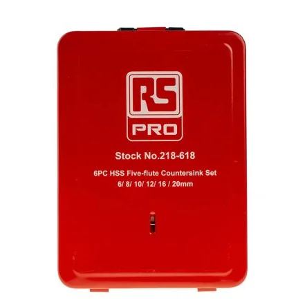 - RS PRO HSS Countersink Drill Bit Set, 6 mm, 8 mm, 10 mm, 12 mm, 16 mm, 20 mm Head, 5 Flute(s), 90°, 6 Piece(s) - 218618
