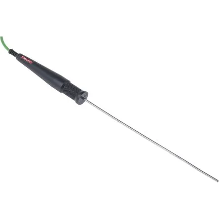 RS PRO Type K Temperature Probe Introducing the range of RS PRO high-quality Type K Temperature Probes, ideal as a heavy-duty and high-accuracy solution for measurement of gases and liquids at very high temperatures. The probe has been designed with a straight handle for better and steadier control when measuring, ensuring reliable results, and features a 1 m long durable cable with a moulded mini plug, offering quick and easy installation, especially when time and resource is limited. The probe has a robust stainless-steel construction with mineral insulation, suitable for use in harsh environments like industrial or commercial settings, whilst ensuring highly accurate and reliable measurements while being versatile enough to use in a wide range of applications. Features and Benefits: This range of RS PRO Type K thermocouple temperature probes are ideal for high-accuracy and reliable measurement of gases and liquids at very high temperatures in a range of environments Each sensor has a wide operating temperature range: -200 °C to +1100°C with a 3 mm probe diameter and ±1.5°C (±0.25%) accuracy The thermocouple sensor probe is made from rigid corrosion-resistant stainless steel for protection of the sensing element with mineral insulation, while the domed probe tip allows for reliable and accurate results Designed to be waterproof, the probe can withstand liquid ingress should it happen while measuring Probe Length: 210 mm Applications: Temperature probes are known for their robust design meaning they are ideal for use in many general-purpose industrial, commercial and scientific applications where accurate temperature measurement and monitoring are key and essential in ensuring equipment is functioning correctly or accurately measuring during testing and investigations. These sensor probes are often used in the following areas: Air conditioning and refrigeration Chemical industry Plastics processing Stoves and grills Air, gas and liquid temperature measurement Exhaust gas temperature measurement Food processing Laboratories What is a Type K Probe? One of the most common sensors used in temperature probes, the Type K thermocouple sensor is well known for being highly accurate and durable, while also being versatile enough to be used in a range of environments. They are often used for industrial purposes as they can withstand much higher temperatures than other temperature sensors, while still performing at their optimum. Why RS PRO? RS PRO is our own brand range and brings you a wide range of high-quality, great value products offering you more choice. Trusted by engineers all over the world, every part of every RS PRO product has been rigorously tested against demanding industry standards they’re only given the RS PRO seal of approval if we’re confident of their exceptional quality, which means you can be confident too.