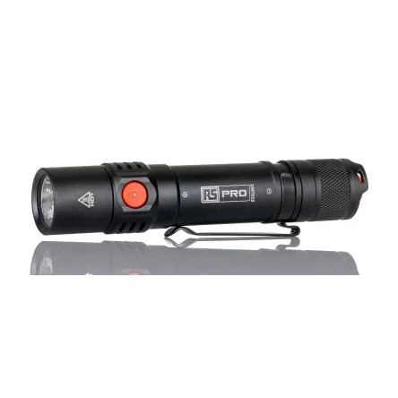 RS PRO LED Torch Black, Red - Rechargeable 1200 lm, 133.5 mm - 2397015