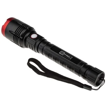 RS PRO LED Torch Black, Red - Rechargeable 3200 lm, 242 mm - 1964197