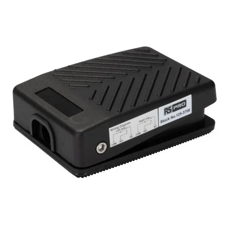 RS PRO Foot Switch – Light Duty – 15A. Looking for a reliable foot switch to control your circuit? The RS PRO foot switch is an excellent choice, featuring a robust case made from plastic reinforced with glass fibre. This construction ensures the switch is well-insulated, strong, and durable. Activation is simple: just apply pressure to the pedal to supply power, and release to stop, giving you precise control over your circuit. Safety is a priority with this switch, as the galvanically separated contacts minimise the risk of electric shock. Additionally, this foot switch features a slow action break, and boasts an IP20 rating, making it touch-proof and protected. This makes it a safe and efficient component for your industrial or automotive applications. Features and Benefits. ;ul> ;li>Light Duty ;/li> ;li>Momentary Foot Switch ;/li> ;li>Contact Configuration: DP-CO ;/li> ;li>Glass fibre reinforced plastic housing ;/li> ;li>Galvanically separated contacts ;/li> ;li>IP20 Rated ;/li> ;/ul>. Dimensions. ;ul> ;li>75 mm x 100 mm x 33mm ;/li> ;/ul>