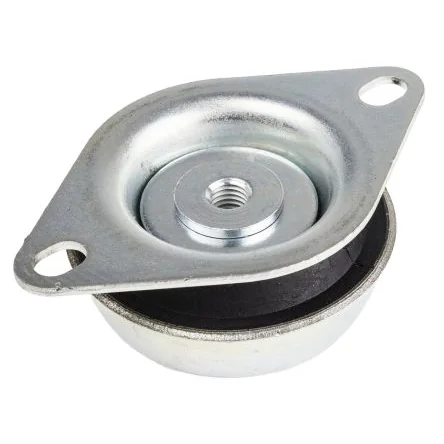 RS PRO Anti-Vibration MountThe RS PRO M12 metal anti-vibration mount can bear 290kg at 45 shore A compression load. It is a captive flanged mount with a rubber element. It may be applied in both, shear and compression to give maximum isolation from vibrating equipment. It is designed to take the vertical load.Features and Benefits• Compact design with in-built bump and rebound control feature to control the movement of equipment in transit • Compression design and metal cap effectively eliminate airborne noise as compared to spring mountings • Dome-shaped metal cap protects the elastomer against splashes of oil and fuel contamination • Low height captive mounting capable of taking 40kg to 5000kg load • Thick base flange metal for additional strengthApplications• Blowers • Centrifugal fans • Compressors • Electronic control panels • Marine engines (no thrust) and gearboxes • Pumps • Railway equipment compartments • Static and mobile generator sets