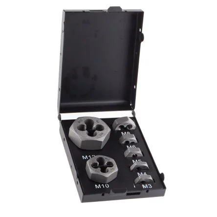 High-quality HSS die nut set for precise threading from M3 to M12, ideal for automotive and engineering tasks.