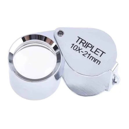 RS PRO Triplet Pocket Magnifiers. This series of hand held magnifiers from our trusted and reliable own brand RS PRO is an excellent collection of magnifying glasses perfect for magnifying objects and close up precision work. This series of magnifiers are available with single, double or triple lenses, each offering varying levels of magnification and combination options providing versatility. The lenses provide high quality magnification and are able to produce clear and precise images. The lenses are recessed in a durable polished chrome plated body offering excellent protection when not in use. In addition, the magnifying glasses are supplied with a high quality leather pouch offering enhanced protection and storage. Available sizes: ; 3429814 3429814 - Triple lens, 10, 15, 20 x magnification ; 3429808 3429808 - Double lens, 10, 15 x magnification ; 3429375 3429375 - Single lens, 10 x magnification. Features and benefits. Available with single, double or triple lenses Combination of lenses offers a versatile magnifier Clear and precise magnification with minimal distortion Lightweight and compact design Housed in a polished chrome plated case offering excellent protection Supplied with a high quality leather pouch for enhanced protection and storage. Application. Magnifying glasses are a type of hand tool ideal for magnifying small objects and working close-up for precision. They are available in a variety of sizes from hand held to desktop, depending on the type of application. Magnifying glasses feature a durable lens with the ability to magnify objects from as little as 1 time up to 100 times. Magnifying glasses are used in a wide range of applications such as: Arts and crafts Electronics DIY Jewellery making Renovation Repairs Sewing. FAQs. How strong is the magnifying glass?. Each magnifying glass offers a different magnifying strength, with combination options available. ; 3429814 3429814 - Triple lens, 10, 15, 20 x magnification ; 3429808 3429808 - Double lens, 10, 15 x magnification ; 3429375 3429375 - Single lens, 10 x magnification. What are the lens diameters?. ; 3429814 3429814 - 18 mm (triple lens) ; 3429808 3429808 - 18 mm (double lens) ; 3429375 3429375 - 21 mm (single lens)