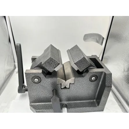 Shaft Vice. For use on a milling machine or drill press. Clamping capacity 10-80mm diameter Jaws have case hardened, heat treated linings Base and jaws are made from cast iron The base of the vice has a V-block which is made from hardened steel Can be set up either in a horizontal or vertical position Fitted with two adjustable sliding blocks Non-working surfaces are smoothed and painted