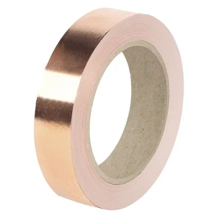 35 micron copper foil coated with a non-conducting thermosetting solvent based acrylic adhesive supplied on a removable silicone release liner.Non-conductive acrylic adhesive Good high and low temperature resistance Can be easily soldered Easy unwind