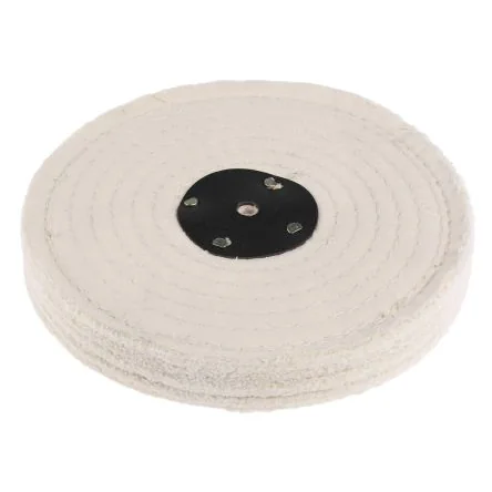 Efficient white stitched polishing wheel for non-ferrous materials, safe up to 3000rpm.