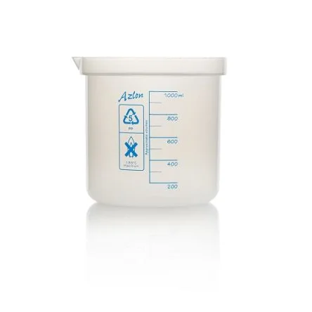 Durable 2L PP beaker with graduations, ideal for precise measurements in labs.