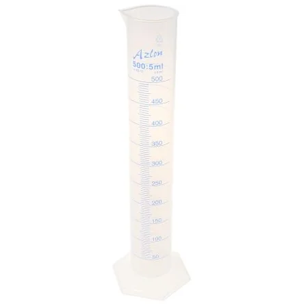 Lightweight and durable 500ml graduated cylinder for precise liquid measurement.