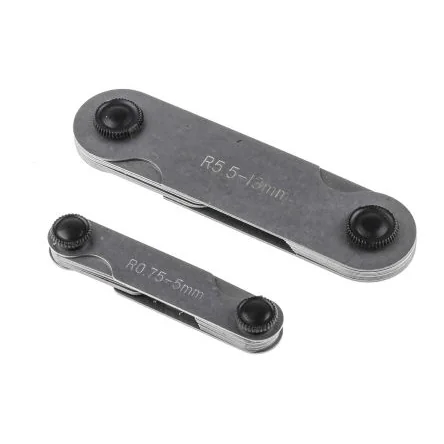 RS PRO Radius Gauge Set Metric 16 Blades 0.25 mm, 0.5 mm, 0.75 mm, 5.5 mm to 13 mm, 5 mmThis two-piece radius gauge set has a compact penknife style for ease of storage. With 16 to 18 blades per gauge, this set is handy for measuring internal and external radii within a range of 0.75 mm to 13 mm. Each gauge in this set has clearly marked blades for quick and easy measurement. The 18-blade gauge measures radii between 0.75 mm and 5 mm, while the 16-blade gauge measures radii between 5 mm and 13 mm. The convex and concave shapes of the blades allow for use in awkward locations, such as inside a tube. Part of the RS PRO series, this product is designed to deliver reliable quality and durability. Its stainless steel construction means its resistant to fire, heat and corrosion. Commonly used in manufacturing and the machining industry, this radius gauge set lets you measure curved corners and check for imperfections on curved surfaces.Features and Benefits• Two-piece radius gauge set • Metric measurement • Stainless steel construction • Set 1 (18 blades): 0.25 mm increments, measurements ranging from 0.75 mm to 5 mm • Set 2 (16 blades): 0.5 mm increments, measurements ranging from 5 mm to 13 • Each blade is clearly marked with its sizeRS PRORS PRO is our own brand range and brings you a wide range of high-quality, great value products offering you more choice. Trusted by engineers all over the world, every part of every RS PRO product has been rigorously tested against demanding industry standards they’re only given the RS PRO Seal of Approval if we’re confident of their exceptional quality, which means you can be confident too.
