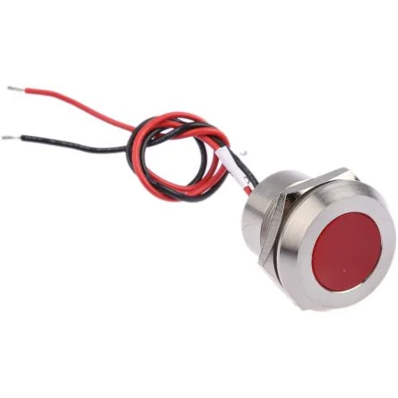 RS PRO Red Indicator, 24 V dc, 22 mm Mounting Hole Size, Lead Wires Termination, IP67With a bright LED (light-emitting diode) light, this 22 mm RS PRO 24 V dc indicator will provide a clear signal in dark conditions. Youll find this type of device in industrial settings, including the food processing, transportation and marine industries. The pack consists of an LED bulb with an 18 mm red epoxy lens and a stainless steel bezel that sits flush. The light intensity is 467 mcd (millicandela) (prominent) and 800 (flush). Its 24.5 mm long with lead wire terminations. Theres a fixing nut and spring washer for easy installation. Designed for durability, the LED bulb has a long life with minimal energy consumption and can be read in daylight. This red indicator pack is an RS PRO branded product, which means its been tested by leading engineers for consistency and durability. The main body has been sealed to ingress protection of IP67, so its water and dirt-proof.Features and Benefits• Voltage of 24 V dc • Red indicator light • 22mm mounting hole • LED (light-emitting diode) • Lamp size of 18 mm • Lead wire termination • IP67 so dirt- and water-resistant • Flush bezel • Metallic (stainless steel) • Current rating of 40 mA • Intensity of 465 mcd (millicandela) when prominent and 800 mcd when flush • Length of 24.5 mmRS PRORS PRO is our own brand range and brings you a wide range of high-quality, great value products offering you more choice. Trusted by engineers all over the world, every part of every RS PRO product has been rigorously tested against demanding industry standards they’re only given the RS PRO Seal of Approval if we’re confident of their exceptional quality, which means you can be confident too.