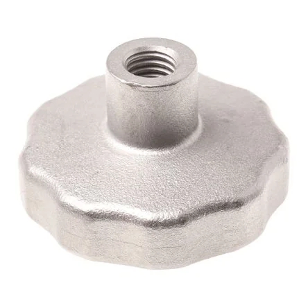 RS PRO Stainless Steel Female Scallop Handwheel Knobs. ;p>Knobs are used in a wide variety of applications in our day-to-day lives and perform many functions, from being used as fixed handles to being used to tighten, loosen, adjust, clamp and push other components or pieces of equipment. They are used in various applications, from industrial and construction machinery to audio and visual equipment. ;/p> ;p>Scallop-shaped handwheels provide an easily-gripped shape, providing ergonomic user comfort, with a varying number of lobes depending on the grip and pressure required. The knobs are fitted with either a protruding screw (male), a threaded insert (female) or through threads depending on the requirements of the application. ;/p>. ;p>These female knobs are made from stainless steel to ensure that the threads last throughout wear and tear and general use. The corrosion-resistance of stainless steel also allows these knobs to be used in hygiene-focussed environments, such as medical applications, food preparation applications and dental applications. ;/p> ;p>Female knobs: M6 (RS ; 478630 478630 ), M8 (RS ; 478939 478939 ), M8 (RS ; 478999 478999 ), M10 (RS ; 478967 478967 ), M10 (RS ; 478977 478977 ), M12 (RS ; 478973 478973 ). ;/p>. Features ; Benefits. ;ul> ;li>Drawn from Stainless Steel ;/li> ;li>Matte shot blasted finish ;/li> ;li>Specially designed for the food processing industry ;/li> ;li>Available with threaded blind hole or threaded through hole ;/li> ;/ul>. Applications. ;p>These scalloped handwheel knobs are used in a variety of applications, from industrial and construction machinery to audio and visual equipment, including: ;/p> ;ul> ;li>Tripods ;/li> ;li>Machinery ;/li> ;li>Audio equipment ;/li> ;li>Food preparation machinery and equipment ;/li> ;/ul>