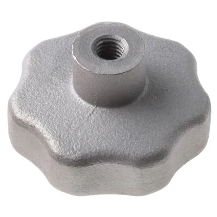 RS PRO Stainless Steel Female Scallop Handwheel Knobs. ;p>Knobs are used in a wide variety of applications in our day-to-day lives and perform many functions, from being used as fixed handles to being used to tighten, loosen, adjust, clamp and push other components or pieces of equipment. They are used in various applications, from industrial and construction machinery to audio and visual equipment. ;/p> ;p>Scallop-shaped handwheels provide an easily-gripped shape, providing ergonomic user comfort, with a varying number of lobes depending on the grip and pressure required. The knobs are fitted with either a protruding screw (male), a threaded insert (female) or through threads depending on the requirements of the application. ;/p>. ;p>These female knobs are made from stainless steel to ensure that the threads last throughout wear and tear and general use. The corrosion-resistance of stainless steel also allows these knobs to be used in hygiene-focussed environments, such as medical applications, food preparation applications and dental applications. ;/p> ;p>Female knobs: M6 (RS ; 478630 478630 ), M8 (RS ; 478939 478939 ), M8 (RS ; 478999 478999 ), M10 (RS ; 478967 478967 ), M10 (RS ; 478977 478977 ), M12 (RS ; 478973 478973 ). ;/p>. Features ; Benefits. ;ul> ;li>Drawn from Stainless Steel ;/li> ;li>Matte shot blasted finish ;/li> ;li>Specially designed for the food processing industry ;/li> ;li>Available with threaded blind hole or threaded through hole ;/li> ;/ul>. Applications. ;p>These scalloped handwheel knobs are used in a variety of applications, from industrial and construction machinery to audio and visual equipment, including: ;/p> ;ul> ;li>Tripods ;/li> ;li>Machinery ;/li> ;li>Audio equipment ;/li> ;li>Food preparation machinery and equipment ;/li> ;/ul>