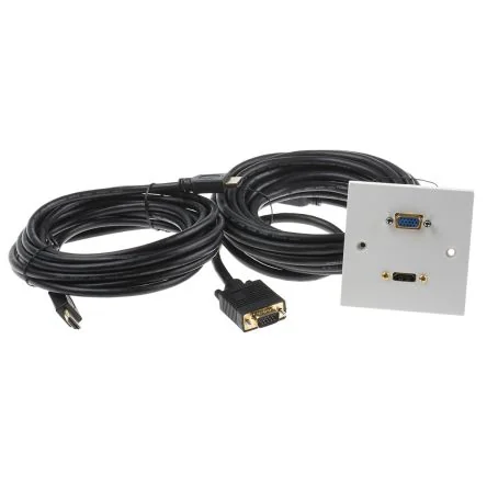 Single Face Plate HDMI/SVGA Series. This is a single faceplate with a HDMI and VGA connector. The faceplate comes with female connectors at the front and male connectors on the opposite end of the cable. These are ideal for you to connect a range of devices while running cables behind walls. The single gang unit will fit standard size electrical back boxes. The Plate itself is 10mm thick. The remainder of the space allows for stub / cables to bend in the necessary direction. Features and Benefits. Cable lengths: Stub, 5m, 7m, 10m, 15m, 20m Offices Conference rooms Schools Hospitals Hotels. Available in this Range. Stock No. ; 919-4016 919-4016 is a single HDMI/SVGA faceplate with a 5m cable Stock No. ; 919-4025 919-4025 is a single HDMI/SVGA faceplate with a 7m cable Stock No. ; 919-4028 919-4028 is a single HDMI/SVGA faceplate with a 10m cable Stock No. ; 919-4022 919-4022 is a single HDMI/SVGA faceplate with a 15m cable Stock No. ; 919-4031 919-4031 is a single HDMI/SVGA faceplate with a 20m cable Stock No. ; 919-4034 919-4034 is a single HDMI/SVGA faceplate with a stub