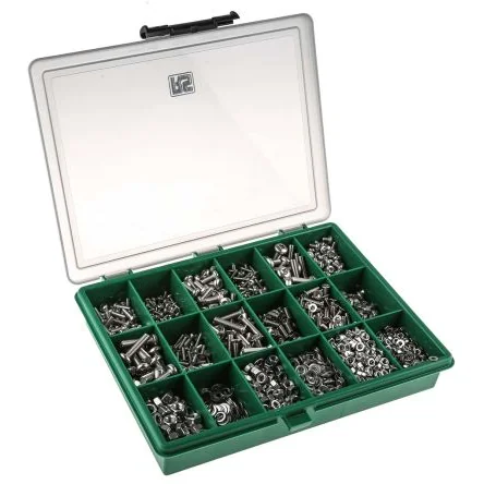 RS PRO Stainless Steel 2,475-Piece Torx Drive Screw/Bolt, Nut & Washer KitThe RS PRO Torx screw/bolt, nut and washer kit contains 2,475 A2 (304) stainless steel fasteners. It includes Torx-head machine screws, washers and hex nuts in a range of metric thread sizes from M3 through to M6 size. Torx-head screws offer a greater level of security and are used to prevent tampering. The Torx -drive design allows screws to be tightened as far as possible without the tool slipping out. The screws are supplied in five lengths ranging from 6 mm to 25 mm. Youll find two different head types – pan, which has a raised, domed head that sits above the material surface, and countersunk (flat), which is fastened into a countersunk hole so the head sits flush with the material surface. The screws, nuts and washers are made of corrosion-resistant type A2 (304) stainless steel and are commonly used in the automotive, electronics and construction industries.Features and Benefits• 2,475 piece screw/bolt, nut and washer kit • Shortest screw length of 6 mm • Longest screw length of 25 mm • Pan and flat countersunk head shapes • Torx-drive type • Nuts conform to DIN (Deutsches Institut für Normung, or the German organization for standardization) 934 (hexagonal nut standards) specification • Thread sizes of M3, M4, M5, and M6 • A2 (304) corrosion-resistant stainless-steel material • Plain stainless-steel finish • RoHS (Restriction of Hazardous Substances) compliantRS PRORS PRO is our own brand range and brings you a wide range of high-quality, great value products offering you more choice. Trusted by engineers all over the world, every part of every RS PRO product has been rigorously tested against demanding industry standards they’re only given the RS PRO Seal of Approval if we’re confident of their exceptional quality, which means you can be confident too.