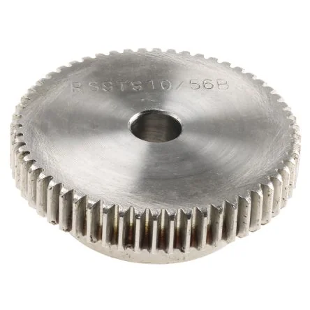 Durable stainless steel spur gear with 56 teeth and 10mm bore for reliable performance.