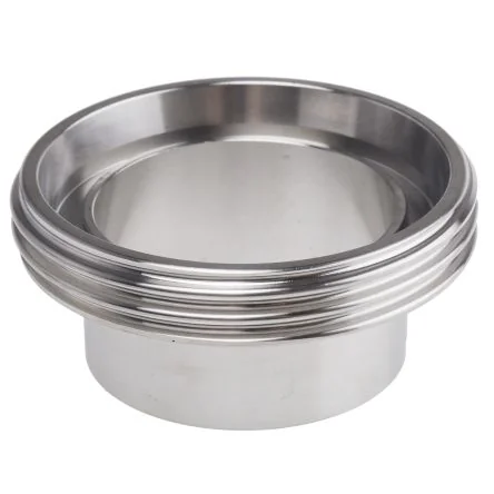 Durable stainless steel pipe fitting designed for hygienic connections in food and pharmaceutical applications.