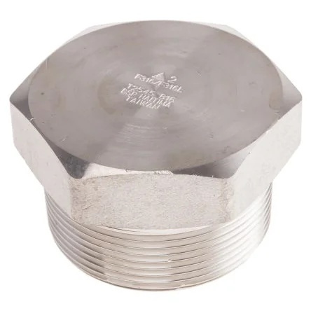 Durable stainless steel hexagon plug for reliable male threaded connections.