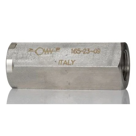 Durable stainless steel hydraulic check valve with a 65 L/min flow rate, ideal for high-pressure applications.