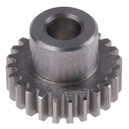 DIN Standard - DIN 867, DIN 3962, DIN 3963, Grade / Quality 9 or equivalent. SSN10/10B and SSN10/12B are hobbed type pinions with cutter runout after the 5 mm gear face width. RS PRO Steel Spur Gears. Use these steel spur gears from RS PRO to get your industrial equipment moving. Our extensive range of spur gears is selected for their high-quality, ease of use and performance while ensuring the correct power, torque multiplication, and speed reduction. To obtain your ideal solution, browse the range using the improved filters to locate the module to suit your application. Also known as. ;ul> ;li>Straight gears ;/li> ;li>Straight-cut gears ;/li> ;li>Spur wheels ;/li> ;li>Spur gearing ;/li> ;/ul>. Features and Benefits. ;ul> ;li>Steel EN8 (080M40/080M46) or equivalent ;/li> ;li>Range of gear ratios ;/li> ;li>Ideally used for speed reduction or increase, torque multiplication, resolution and accuracy in positioning systems. ;/li> ;li>20° pressure angle ;/li> ;li>Metric ;/li> ;/ul>. Applications. ;ul> ;li>Machine Tools ;/li> ;li>Transmissions ;/li> ;li>Speed Reduction ;/li> ;/ul>