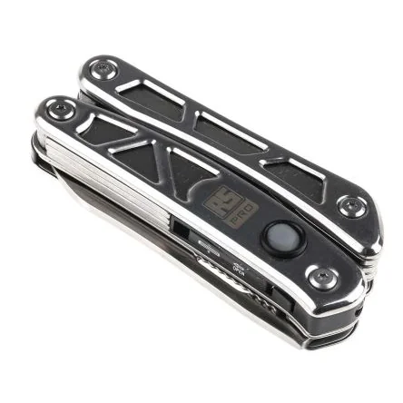 Compact 11-in-1 multitool knife with LED light, ideal for quick repairs and portability.