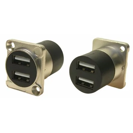 RS PRO Straight, Panel Mount, Female to Male- Dual Port Type USB 2.0 2 USB Connector - 282835