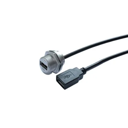Durable IP68 Type A USB connector for secure panel mounting and reliable connectivity.