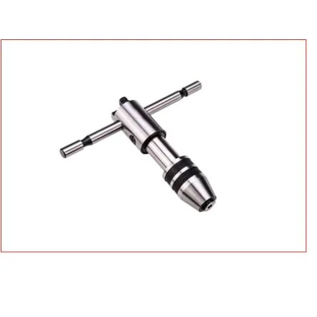 The RS Pro tap wrenches T-bar type is non ratchet type thread size is 1/8 to 1/4 They are a key hand tool accessory when working with thread tools, making the thread tools easier and more controllable when precision work is required. The hardened and tempered collet chuck allows for a positive grip and the steel construction makes this tool durable and hardwearing. This tap wrench has been The RS Pro approved with high quality but at an affordable price, making this a key piece of equipment to have if you often work with thread tools.Ratchet Type T-handles slide both ways for tightening Hardened & tempered split collet chucks for positive grip Knurled & hardened clamping nut Spring tension holds handle in desired position