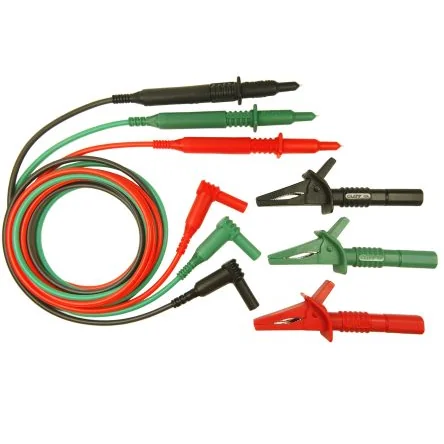 RS PRO Multifunction 3 Wire Test Lead SetRS PRO is proud to introduce a set of high-quality test leads designed for use with testing equipment such as digital multimeters and oscilloscopes. The unique features of these test leads comprise of an unfused probe to 90° 4mm plugs with a CAT III probe adapter and push-fit crocodile clips. They offer generous 1.5m length silicone cables making them the ideal accessories for testers and workstations.Why would you choose this lead set?When it comes to testing accessories, the option of probes and crocodile clips integrated into one kit saves time and is more cost-effective. You can interchange between the two without removing the leads from the tester device. The probes easily reach the required target during the application and return accurate signals while the croc clips grip and hold with authority. Features and Benefits• 4mm plugs• CAT III probe adapter• Un-Fused probe• Push-fit croc clips• 1.5m silicone cablesCrocodile Clip Rating• 10A 1000V CAT II, 600V CAT IIILead Rating• 1kV CAT II without probe adaptor cap• 1kV CAT III with probe adaptor cap fitted• 600V CAT III / 1kV CAT II with crocodile clipsWhat do you get?• Red, Black & Green lead assembly • Red, Black & Green CAT III probe adapter (fitted) • Red, Black & Green extended push-fit crocodile clipApplications• Test & Measurement • Multimeter Test • Electronic ServicingWhy would you choose RS PRO?RS PRO is our own brand of high-quality products whilst bringing you great value for money. Our wide range of products has been engineered to meet high industry standards, so you are ensured reliable and robust solutions.
