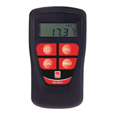RS PRO Thermocouple-logging Digital Thermometer with Bluetooth Introducing the RS PRO Thermocouple Temperature Logging Thermometer, a high quality and high accuracy logging thermometer with with temperature recording and Bluetooth connectivity. This high accuracy, microprocessor driven thermocouple instrument with a wide temperature range of -200°C to 1820°C and can be used for a wide variety of applications which require portable temperature recording with the flexibility of a thermocouple instrument. The handheld thermometer also features additional functions like having ability to record temperature, date and time and Bluetooth capability, and much more, making it incredibly versatile and flexible. Features and Benefits: This RS PRO single input thermocouple-logging digital temperature device features the capability to record up to 1000 time and dated temperature readings This high quality and reliable, microprocessor driven, digital thermometer has a °C/°F switchable function and a measurement range of -200°C to 1820°C (probe type dependant) Because of the design of this thermometer, it has the ultimate flexibility of thermocouple types K/T/J/R/N/E/S and being infra-red sensor compatible, which means this device can be used for monitoring extremely low or high temperatures In addition to this, the thermometer offers the ability to to transfer data to a PC via a Bluetooth connection The included software allows the user to download and save data to a CSV file for further analysis if required Also included is a low battery indication feature to ensure that the device does not switch off suddenly during the measurement process Supplied with a shock-resistant rubber boot that is waterproof and dustproof (IP67) to fully protect the device, PP3 Battery, User Manual and Software CD Applications: Digital thermometers are accurate and easy to use test and measurement devices and can often serve as a method of non-contact temperature measurement when required. Handheld thermometers are great for portability and can easily be carried in the users pocket, especially when temperature readings need to be taken while on the go. Calibration is highly recommended for professional applications that require an accurate reading. Digital thermometers can most commonly be found in: Food industries Hygiene testing Industrial maintenance HVAC Scientific research Medical testing General-purpose temperature monitoring Why RS PRO? RS PRO is our own brand range and brings you a wide range of high-quality, great value products offering you more choice. Trusted by engineers all over the world, every part of every RS PRO product has been rigorously tested against demanding industry standards they’re only given the RS PRO seal of approval if we’re confident of their exceptional quality, which means you can be confident too. Note: Thermocouple Probe / Sensor not included