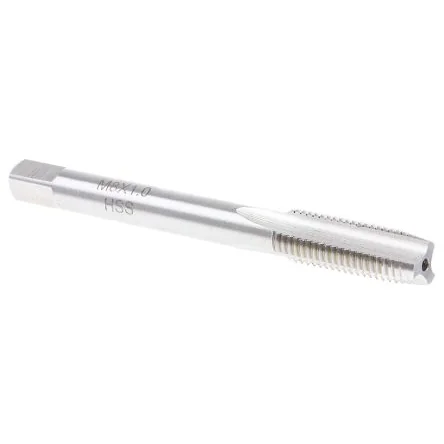 RS PRO HSS Straight Flute Thread Taps. Introducing RS PRO HSS straight flute thread taps, a selection of high quality and professional threading taps ideal for cutting thread (tapping) by hand or machine, into drilled holes in materials such as metal and wood. Our range of thread taps from RS PRO are manufactured using high speed steel (HSS), providing excellent durability and corrosion resistance properties. They are available in a variety of metric sizes to suit a wide range of applications and are compatible with tools such as a tap wrench or power tool for enhanced torque and control. RS PRO taps also feature a second tap lead angle of approximately 8°, allowing for a gradual and precise thread to be cut. Features and benefits. • Variety of metric sizes available • Ideal for hand or machine use depending on the application • Manufactured from HSS for durability and heat resistance • ISO standard. Typical Applications. Threading taps are a type of tool use for cutting thread (tapping) into a pre-drilled hole, to create a clean fitting for bolts and other materials to attach to steel rods and more. Threading taps work by cutting away material to produce a thread when turned. Threading taps can be used with a tap wrench or power tool and are available in various sizes to accommodate a range of applications. They are commonly used in areas such as: • Construction • DIY • Plumbing • Workshops • Renovations. FAQs. What is HSS?. An acronym for High-speed steel, HSS is generally the go-to type of steel needed for drill bits due to their excellent heat resistance at high speeds. As a standard drill can spin upwards of around 500 - 700rpm, the friction can cause a substantial build-up of heat. Something which would not be wanted when working with wood and plastic. What are the different types of threading taps?. The four most popular ones are: Straight Flute Taps: most commonly used type of tap and suitable for blind or though hole thread production in most materials, mainly steel and cast iron. These collect chips in the straight flutes of the tool Spiral Point Taps: suitable for threading through holes. They push chips through holes ahead of the tool Spiral Flute Taps: intended primarily for threading blind holes. They pull chips back from the tip of the tool and up and out of the hole. Forming Taps: produce a thread by pressing the material rather than cutting and no chips are created. Should I lubricate the taps?. It is recommended that lubrication is regularly applied to taps and dies when in use, to allow for friction free threading with precision. This will ensure that a clean thread is achieved with minimal damage. What is the difference between a tap and die?. A tap set is used to create or repair threads in holes which is ideal for things such as nuts and fittings, this process is called tapping. Dies are used to cut threads on materials such as steel rods to allow a fitting to be screwed on and attached, this is called threading.