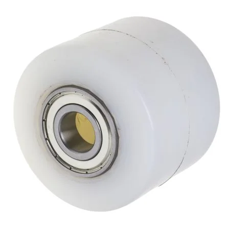 Heavy-duty trolley wheel with solid nylon tyre, ideal for moving heavy loads effortlessly.