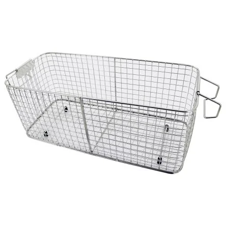 RS PRO Ultrasonic Cleaning Baskets. Introducing the RS PRO range of wire mesh ultrasonic cleaner baskets for use with ultrasonic cleaning tanks. These durable cleaner baskets are an essential accessory for ultrasonic cleaners, helping to minimise and reduce ultrasonic hot spots whilst cleaning. RS PRO cleaning baskets feature convenient handles that can be used to suspend the basket in the tank, ensuring that items and small parts are lifted from the base of the tank and the transducers of the tank are protected. These durable baskets help to reduce cavitation and facilitate a gentler cleaning action for delicate items, helping to prolong the life of them and the tank itself and improve the performance. Features and benefits. Durable lightweight mesh design, allowing delicate items to be safely placed inside and cleaned Handles to allow the basket to be suspended, helping to protect the transducers of the tank and the items inside Available in a range of sizes to accommodate a variety of tanks Helps to facilitate a gentler clean Mesh design helps to minimise and reduce ultrasonic hotspots during the cleaning process. Applications. Ultrasonic cleaner baskets are the perfect accessory for use with an ultrasonic cleaning tank, allowing you to safely clean, remove grime, grease and corrosion from a variety of items. Ultrasonic cleaner baskets are available in a range of materials from stainless steel to plastic and are made in various sizes to match the required size tank. Ultrasonic cleaners use ultrasonic vibrations created by high-frequency pressure sound waves to agitate the water or appropriate cleaning solution that cleans the product. Baskets can be inserted and suspended in the cleaning tanks with items placed inside, preventing damage to them and the transducers of the tank. They are commonly used to clean a range of items such as: Small electronic and mechanical parts Jewellery Medical equipment (however, does not sterilise) Dentures Plastic. What sizes are available?. RS PRO ultrasonic cleaning tank baskets are available in a range of sizes such as: 2 litre - ; 1837515 1837515 3 litre - ; 1837516 1837516 6 litre - ; 1837517 1837517 9 litre - ; 1837518 1837518 10 litre - ; 1837514 1837514 27 litre - ; 1837519 1837519 36 litre - ; 1837520 1837520. Do I need a tray or basket?. Using a tray, rack or basket is highly recommended when using an ultrasonic cleaner as it allows the cleaning process to be carried out to the highest standard, allowing items to be cleaned from all angles. Should the tray or basket be suspended?. Where possible, any accessories used with a cleaning tank should be suspended, keeping items from touching the base and ensuring that the transducers are protected as well as the items themselves.