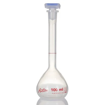 Durable 100ml volumetric flask for accurate measurements in labs.