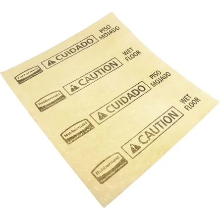 Over The Spill Refill Pads. Over The Spill Refill Pads Tablet consist of slip resistant pads used for quickly covering spills. The yellow pads have black warning messages and symbols in English and Spanish. The warning message reads as Caution Wet Floor and the refill pads can be used with the durable plastic dispenser. The polypropylene pads are strong, absorbent and mildew resistant. FEATURES and BENEFITS:. Includes 20 absorbent pads Highly visible – Yellow colour Black warning message in English and Spanish Warning message reads – Caution Wet Floor Durable construction Each pad is coded with a Universal caution symbol Pads absorb up to 0.34 L of fluid Pads made from melt blown polypropylene Slip resistant Mildew resistant Strong Absorbent Dimensions – 4 x 35.6 cm Pads fit the refill spill station 4251. APPLICATIONS:. Leaks Drips Over spray Chemicals Oil Water Coolants Solvents