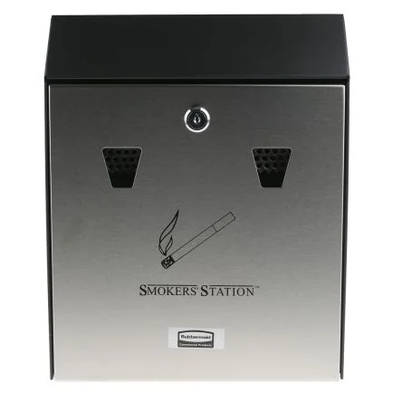 Durable outdoor wall mount ashtray designed for easy waste disposal in public areas.