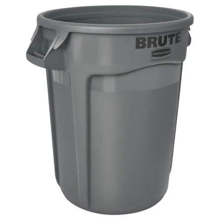 The Rubbermaid Commercial Products vented BRUTE container has innovative venting channels make lifting out liners up to 50% easier, improving productivity and reducing the risk of injury. The proprietary design constructed with the highest quality material plus a UV inhibitor ensures long life in even the most extreme commercial environments. Guaranteed to never fade, warp, crack, or crush.Rounded handles make lifting and moving easier, and are reinforced to resist tearing or damage from even the heaviest loads Reinforced base is specifically engineered to be dragged over rough surfaces, extending life and overall durability even in the toughest environments Contoured base handles improve grip and ergonomics, reducing strain and improving efficiency when emptying containers Rim features integrated rib structure to increase strength and resist crushing