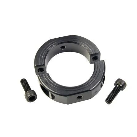 Precision two-piece shaft collar for 10mm bore, ideal for alignment and mounting applications.