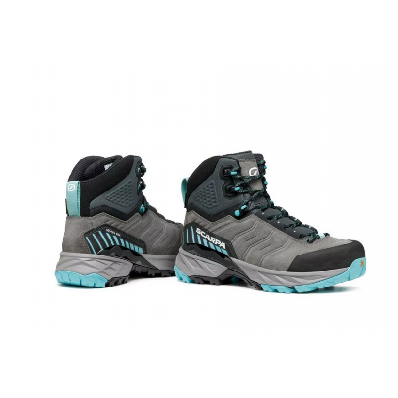 Explore the outdoors with Scarpa's Rush Trek GTX Women's shoes in Gray Aqua, designed for comfort and performance.