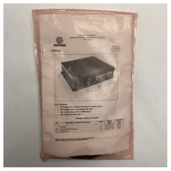 This Rutter Ethernet Breakout Interface Kit RUT-02677-AA is a high-quality and reliable product specifically designed for maritime applications. It provides a simple and safe connection of Ethernet networks on ships, with cables well protected against interference and environmental influences. With this interface kit, installation is quick and user-friendly, which is essential for maritime professionals.