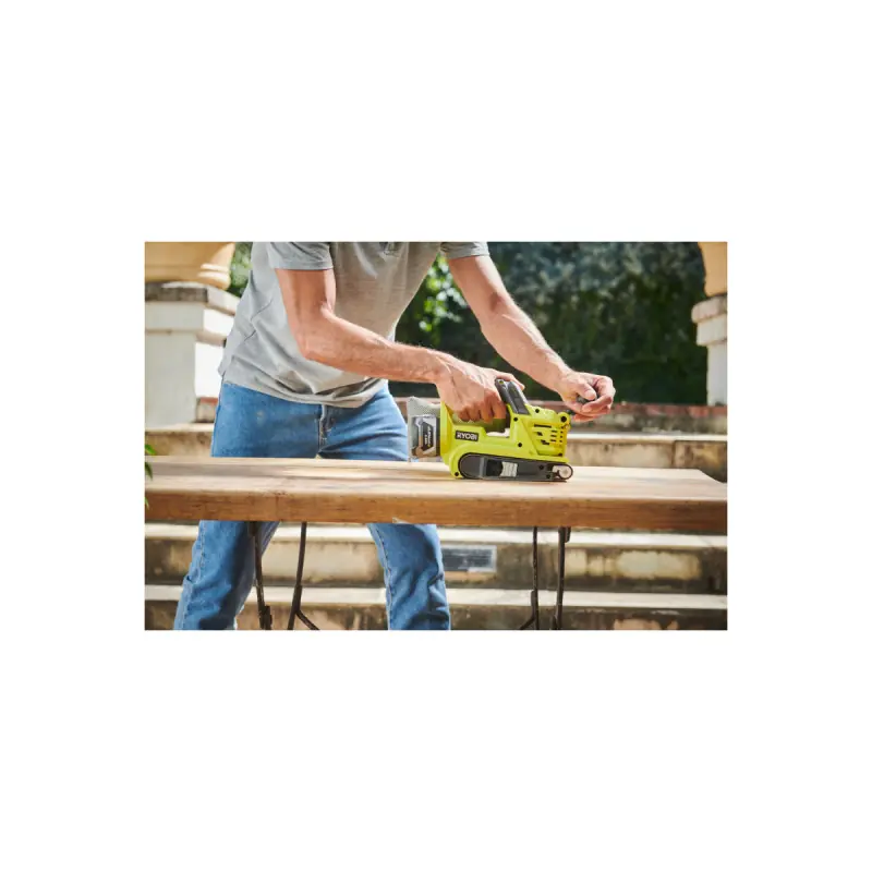 RYOBI Pack Belt Sander R18BS-0 - 18V One+ - 75 mm - 1 battery 2.0Ah - 1 fast charger RC18120-120 a sander designed for heavy sanding tasks with its 76mm belts. The pack includes a battery compatible with many tools from the One+ range as well as a charger.